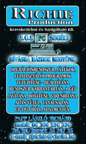 hardware bővítés, software tanácsadás, hálózat építés. Gép karbantartásra, átalány megbízási szerződés köthető!